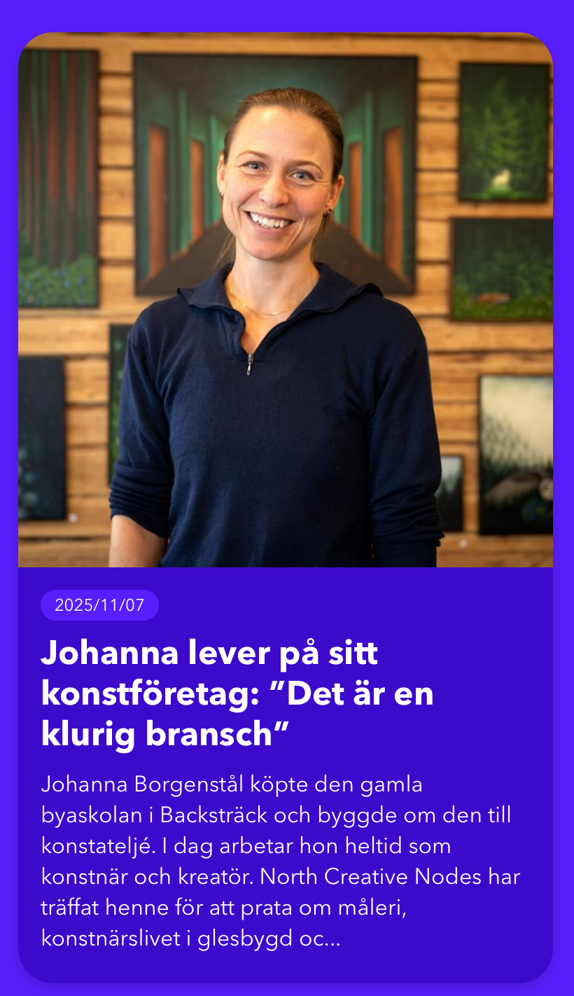 På North creative nodes hemsida kan du läsa en liten om hur det kan vara att driva företag som konstnär, vill du läsa hela texten klickar på bilden nedan så kommer du till repotaget :)